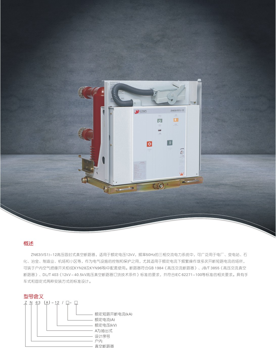 ZN63(VS1)-12固封式户内高压真空断路器