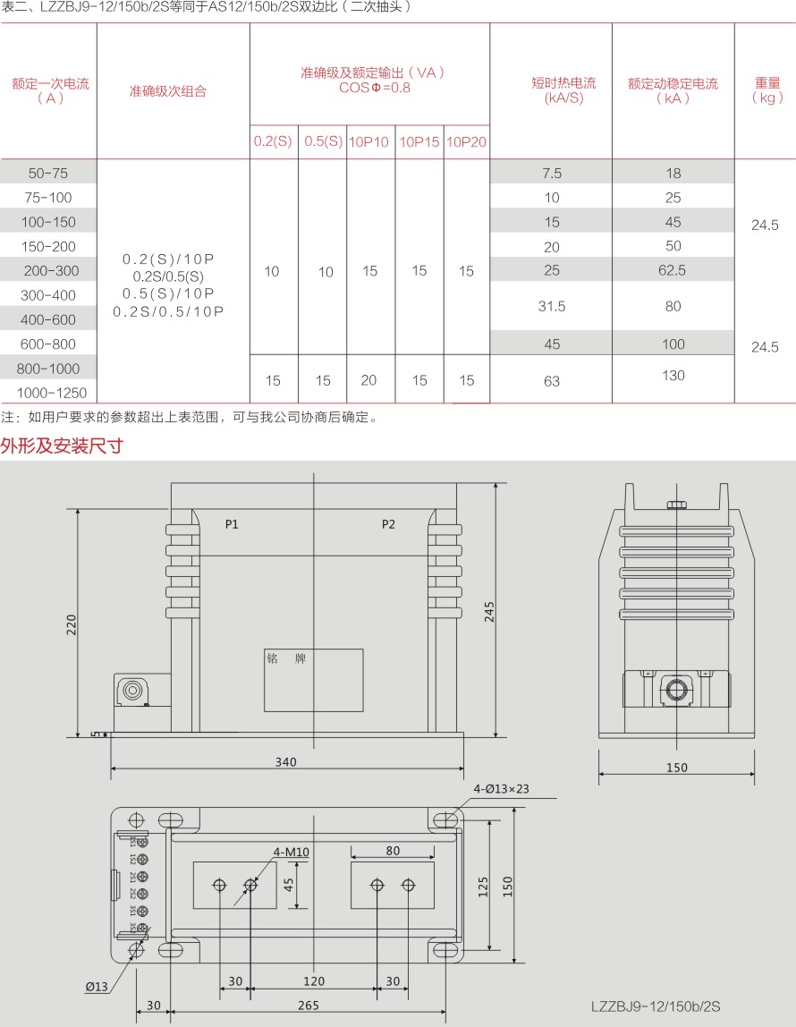 LZZBJ9-12/150b/2S(4S)系列电流互感器